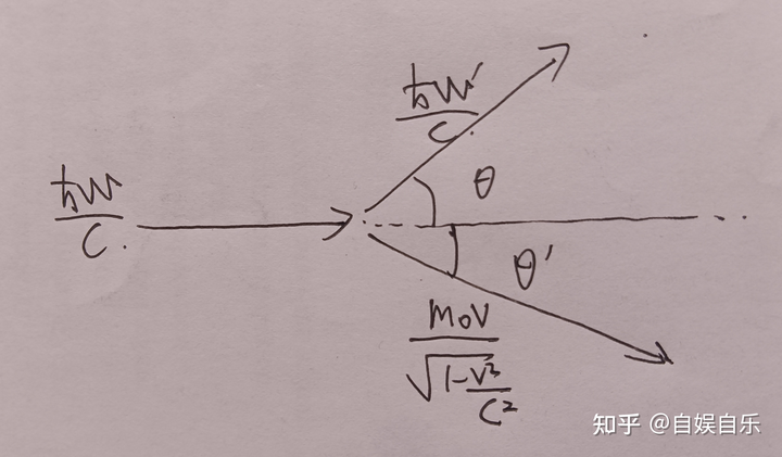 Substituting (1)(2)(3)(4)(6) into (5) yields: \frac{2\hbar^2ωω'(1-cosθ)}{c²}=γ^2m_0^2c^2-γ^2m_0^2v^2+m_0^2c^2-2γm_0^2c^2 (7) (Where γ=\frac{1}{\sqrt{1-\frac{v²}{c²}}})